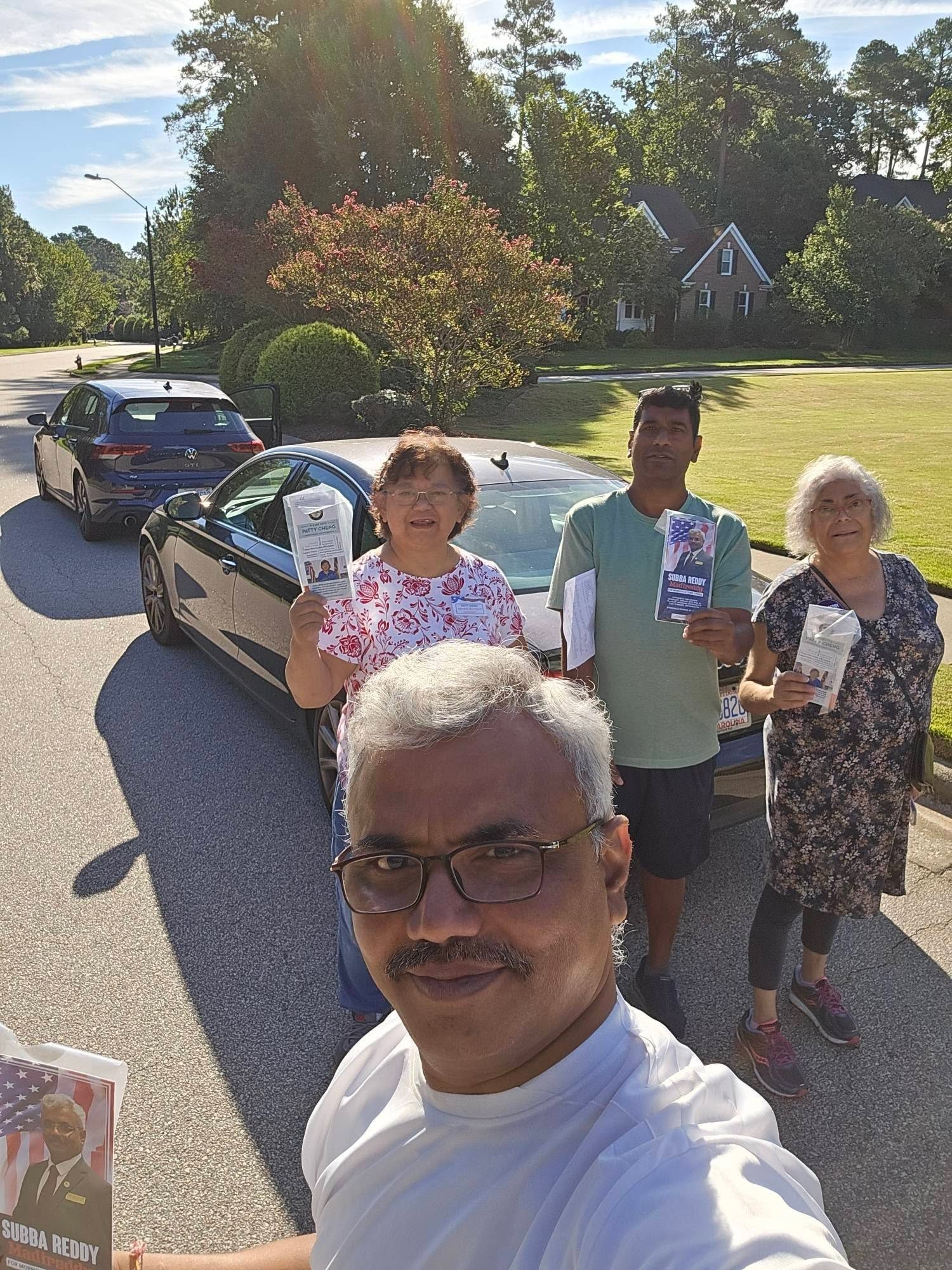 Out knocking on doors in Morrisville and delivering palm cards! I designed my palm card so you can actually punch out the replica of the Morrisville Coin I was awarded.